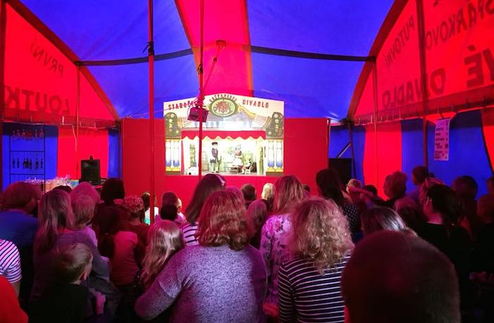 text - loutkový divadelní stan